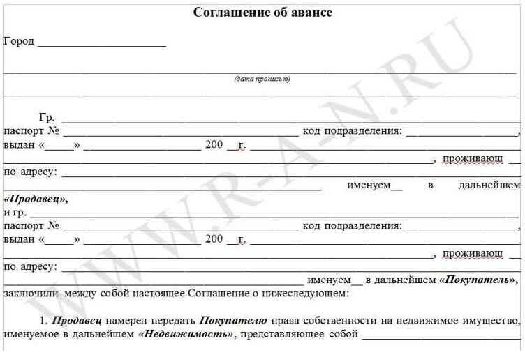 Типовой вариант авансового соглашения выглядит вот так: