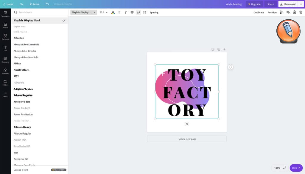Каждый типографский элемент в Canva имеет несколько различных функций настройки, таких как цвет и размер текста. Самое главное, Canva имеет большой выбор шрифтов на выбор. Но приложение также позволяет загружать ваши шрифты (через текстовую ссылку внизу прокрутки списка шрифтов).