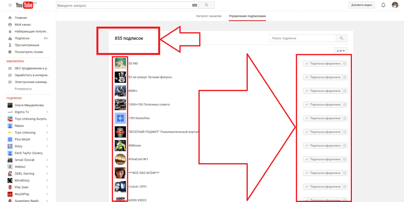 Теперь смотрим видео: Удаление подписчиков на ютубе и возврат кто подписан на наш канал