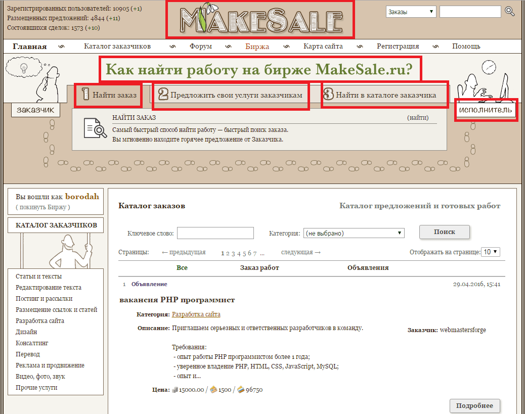 Теперь давайте сделаю небольшой обзор самой биржи фриланса MakeSale …