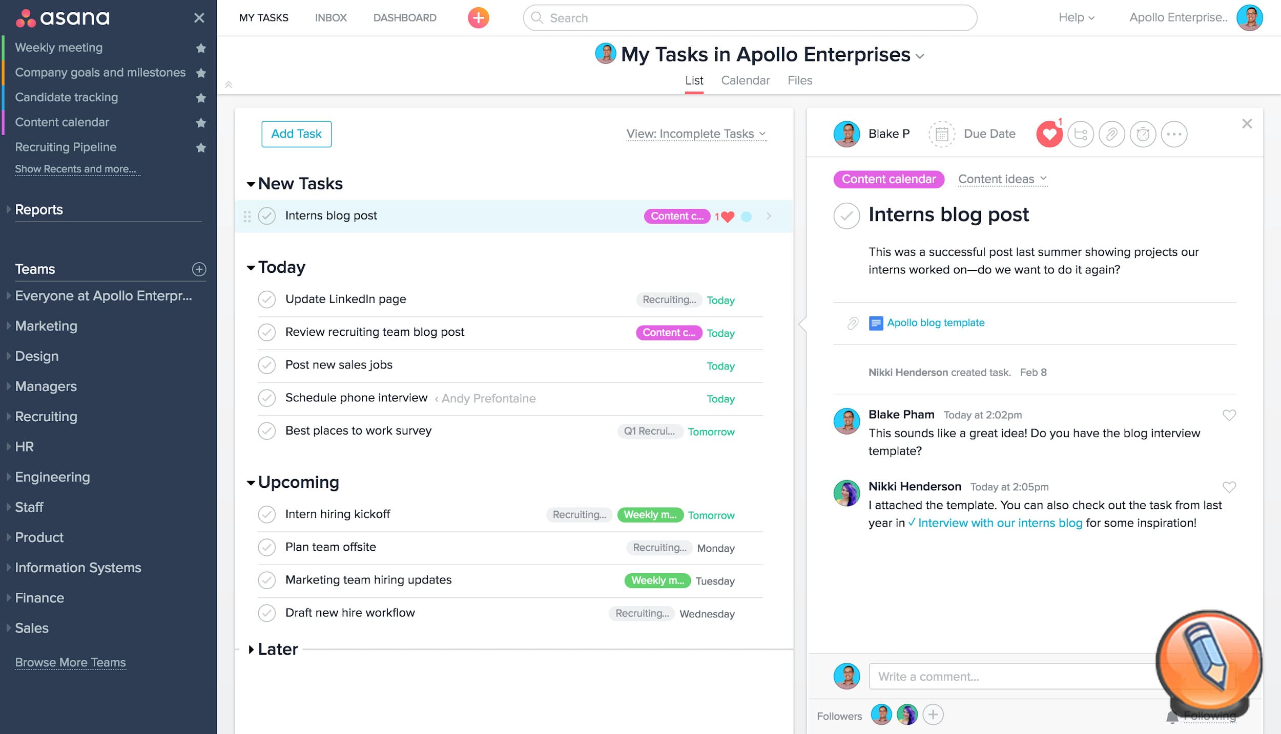Многие облачные системы позволяют пользователям настраивать личную панель управления для одновременного просмотра всех назначенных задач, как показано здесь в Asana.