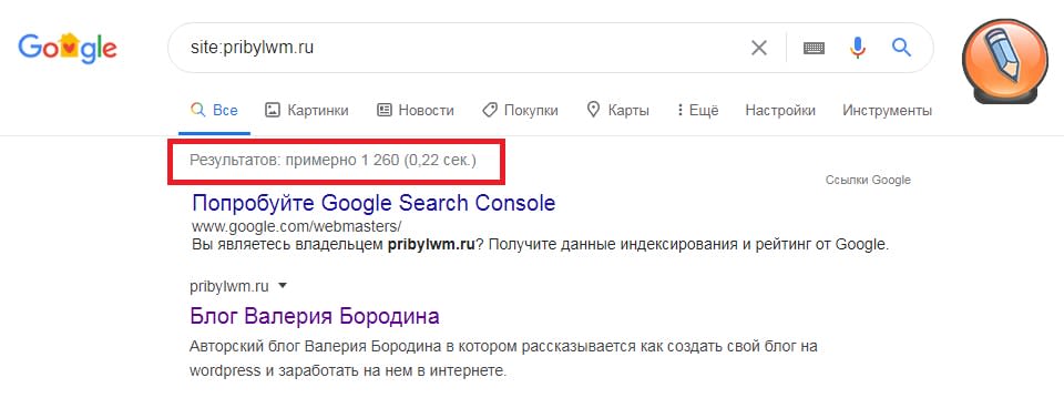 Например, если бы я хотел проверить, сколько страниц моего сайта в настоящее время индексируется Google, это выглядело бы так: