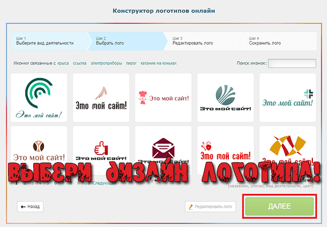 - Шаг второй – Вам нужно выбрать дизайн из представленных образцов и нажмите на кнопку “Далее”.