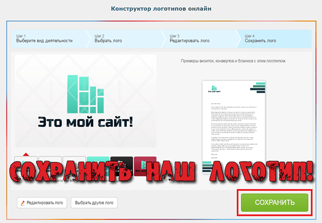 - Шаг четвертый – Сохраняем полученный логотип нажатием на кнопку “Сохранить”.
